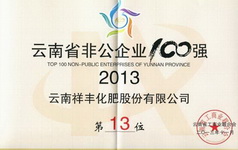2013云南省企業(yè)100強(qiáng)排序第31位