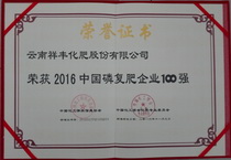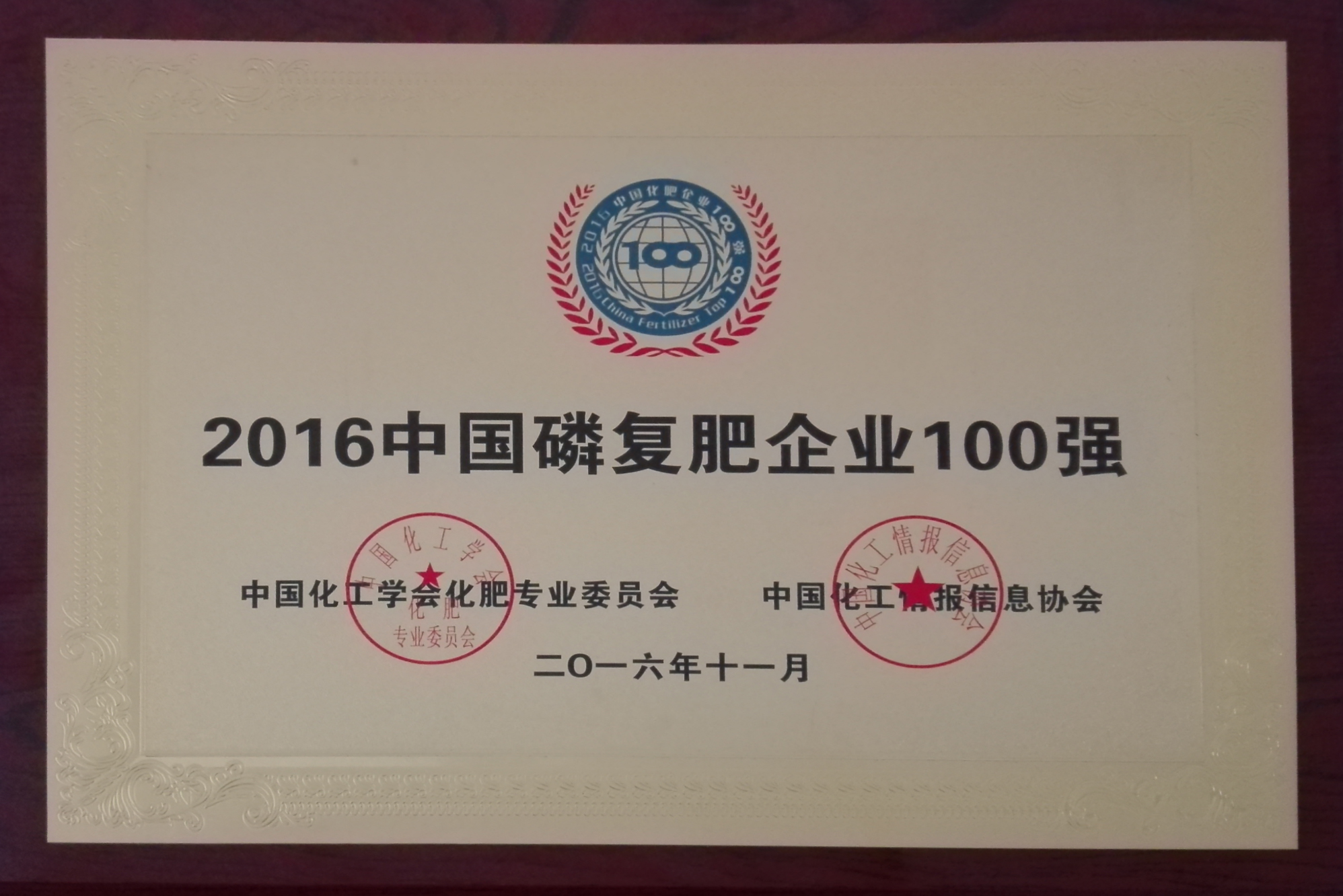 中國(guó)磷復(fù)肥企業(yè)100強(qiáng)(證書(shū))