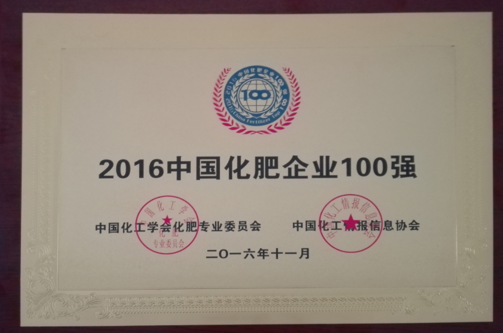 中國(guó)化肥企業(yè)100強(qiáng)(證書(shū))