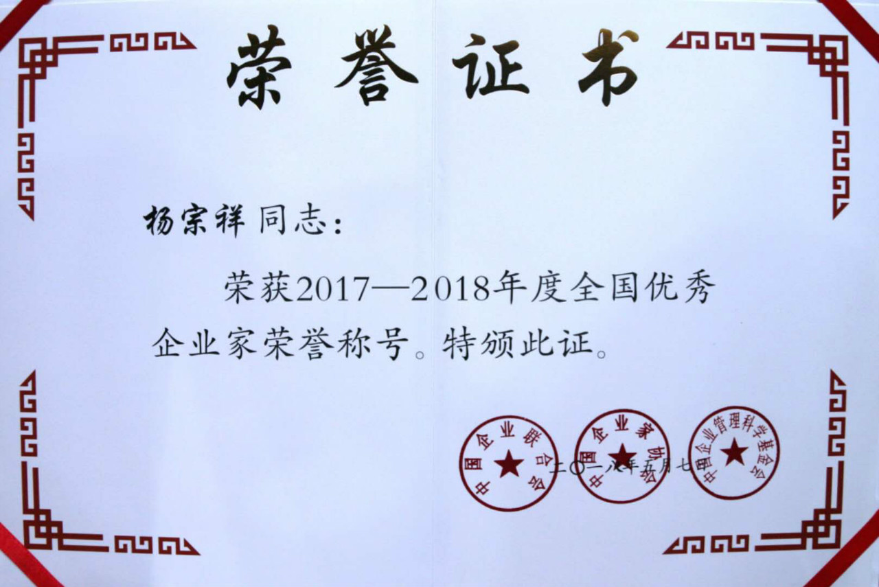 全國優(yōu)秀企業(yè)家榮譽稱號