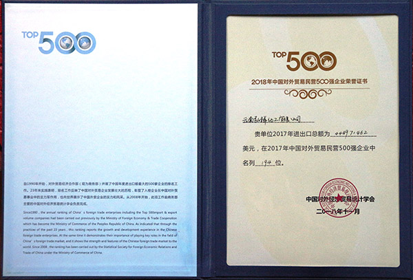 2017中國對外貿(mào)易民營500強企業(yè)(第194名)